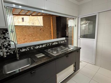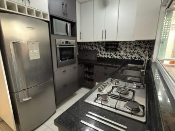 Cozinha equipada com fogão e forno elétrico embutido