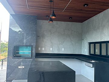 Área gourmet com churrasqueira e ilha